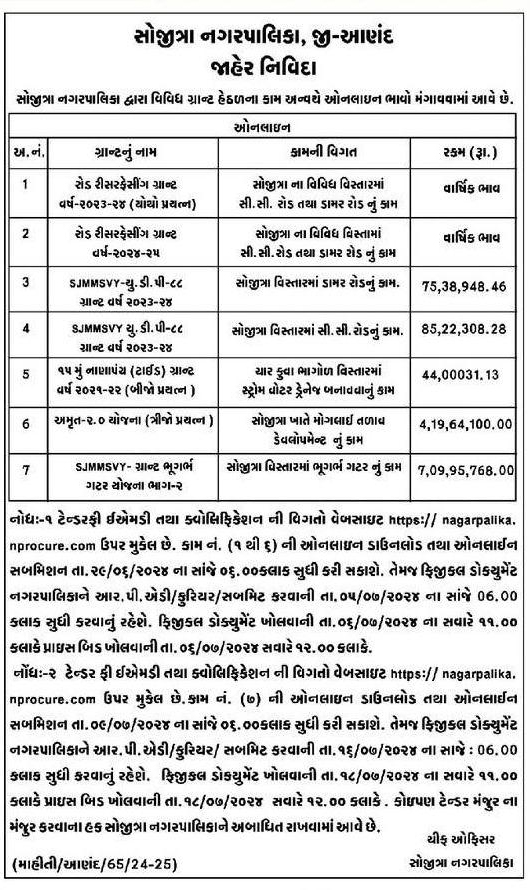 Nagar Palika Nigam Sojitra has floated a e tender for Tender For Construction Of Damor Road.. The project location is SOJITRA, Gujarat, India. The reference number is and it is closing on 29-Jun-2024. Find more about this online tender from below to Submit your bid.